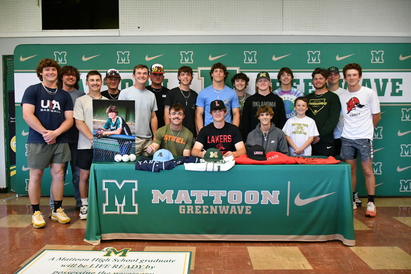 MHS 2023 Graduate and Student-Athlete, Jack Helms signed in May with Lake Land College where he will continue his baseball career as a Pitcher. Helms has been playing baseball in Mattoon for the past twelve years, playing with the Mattoon Hit-Men, Mattoon Wildcats (MMS), Yard Goats 2023, and at MHS. Helms plans to study Mathematics in college. Helms stated, "I am very excited to continue my academic and baseball career at Lake Land! Thank you to all of my coaches and teammates for helping me to develop my skills and realize my love of the game. Thank you to my parents for supporting me through it all!"