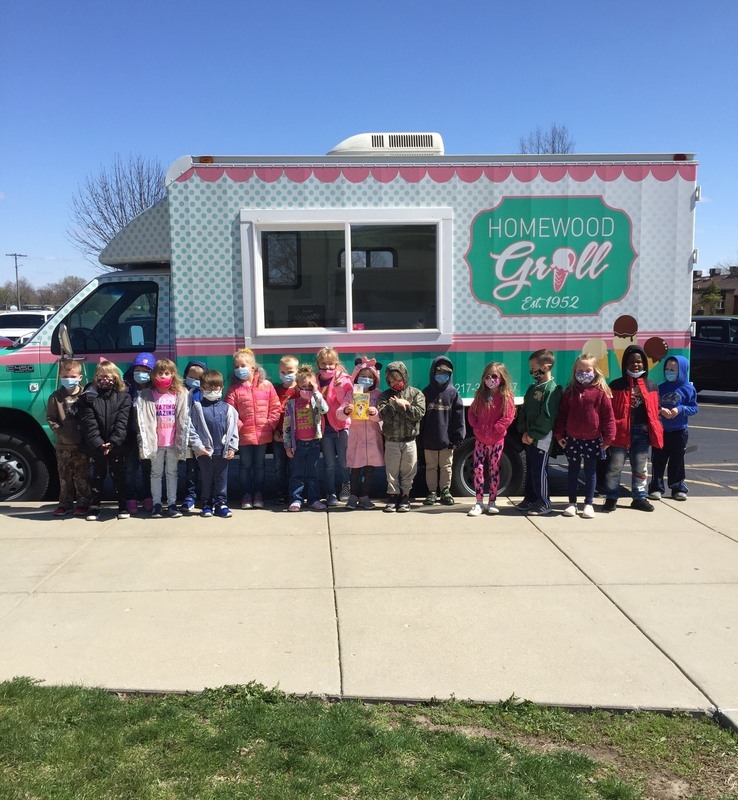 The big prize (and it wasn’t an April Fool’s Day prank) was the appearance of the Homewood Grill ice cream truck delivering 750 cups of ice cream. Dairy Queen certificates were given to remote learners.