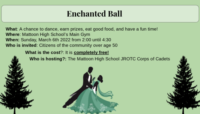 Mattoon High School's JROTC will host an Enchanted Ball for citizens 50 and older from 2 p.m.-4:30 p.m. March 6 the MHS gymnasium. The event is free of charge.