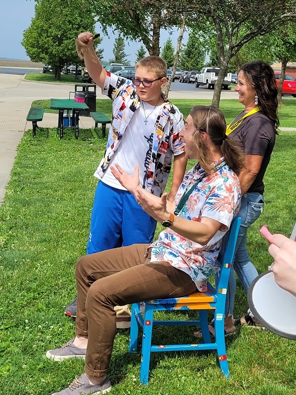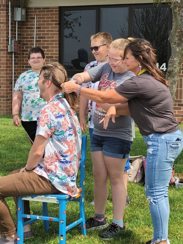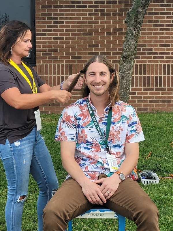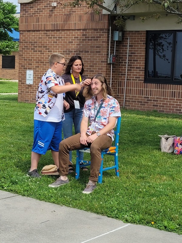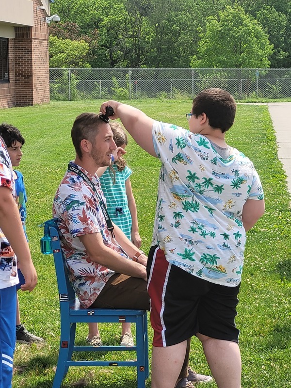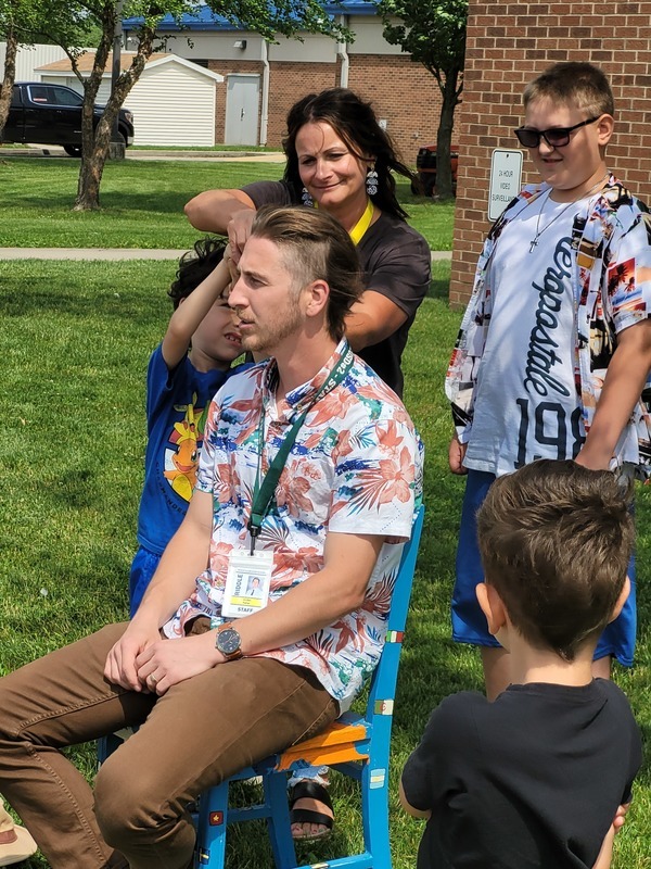 The students at Riddle Elementary met over 5,300 WIGs (Wildly Important Goals) this year and voted to shave Assistant Principal Mr. Rahar's hair. One student per grade level was nominated by their teachers for setting big goals and working hard to achieve them. The students are Tyler McKee, Ezra Bell, Jordyn Cole, Harper Krost, Fletcher Houser, and Kalin Davies. How do you think they did on his new haircut?