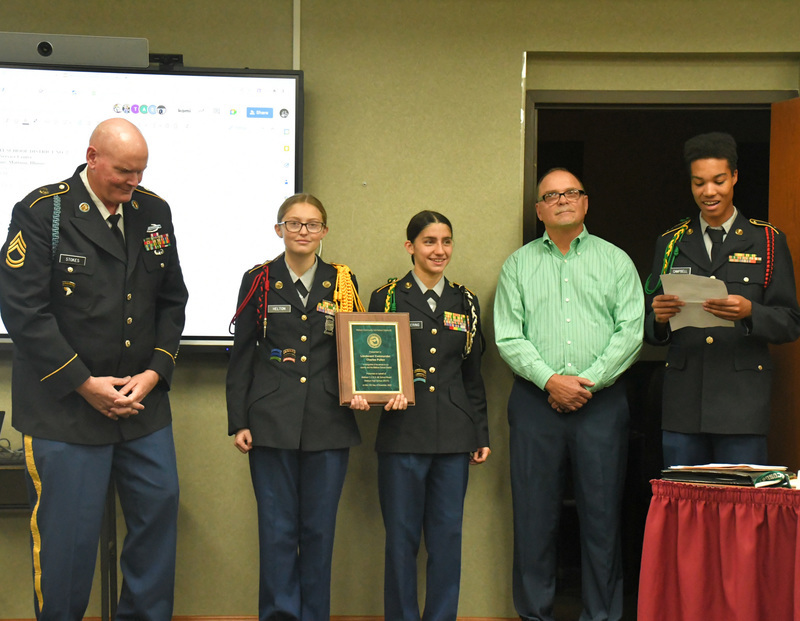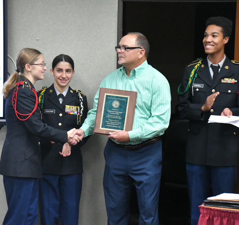 The Mattoon CUSD #2 JROTC Corp of Cadets recognized Commander Charles Pullen, a United States Navy Veteran at the November 15th Board Meeting.